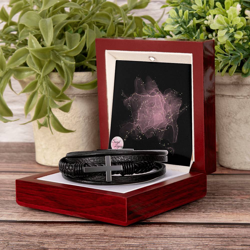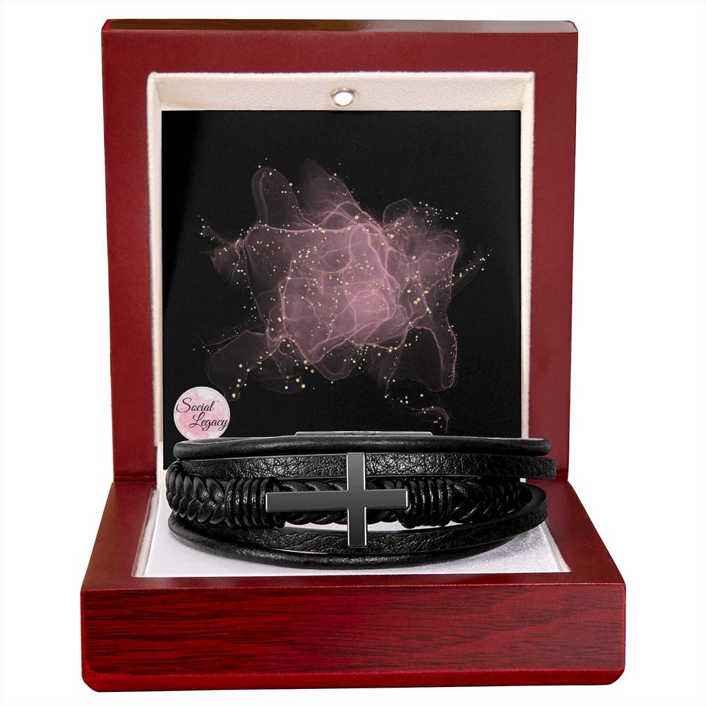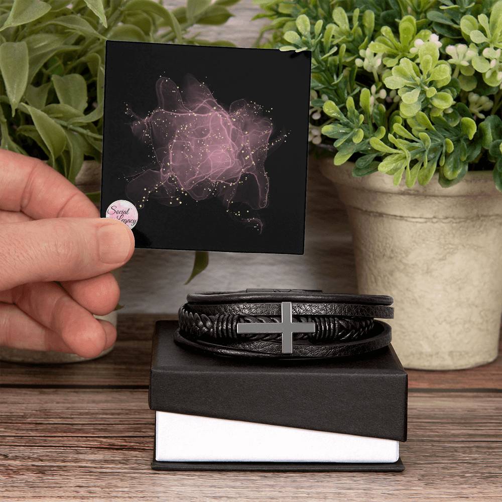 This Men's Cross Leather Bracelet is the perfect keepsake for someone special in your life. Handcrafted with care, this piece features braided vegan leather and a sleek stainless steel cross. This would make an ideal gift for your beloved partner, family members, or dear friends on special occasions like anniversaries, birthdays, or any event where you want to express your love and appreciation in an unforgettable way.